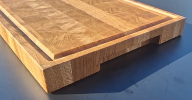 Nous proposons des planches à découper en bois de bout, fabriquées artisanalement dans notre atelier à Castries. De la traditionnelle planche à découper aux modèles au design plus élaboré, nous avons des tailles variées.