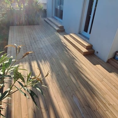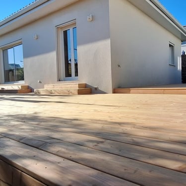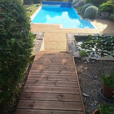 Aménagement de vos espaces extérieurs avec la création de terrasses en bois, ainsi que de pergolas, volets en bois et d'autres éléments extérieurs.