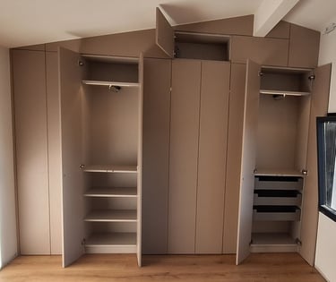 Conception, création et installation de vos projets d'agencement personnalisés (dressing, bibliothèque, bureau, cuisine et autres)